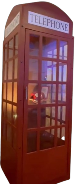 Sumérgete en la nostalgia con nuestra Cabina Telefónica Británica. Este encantador elemento no solo es ideal para decorar tu evento, sino que también permite a los invitados grabar mensajes en privado. La cabina es perfecta para que los asistentes dejen mensajes especiales para los festejados, y cada grabación se conserva como un hermoso recuerdo.