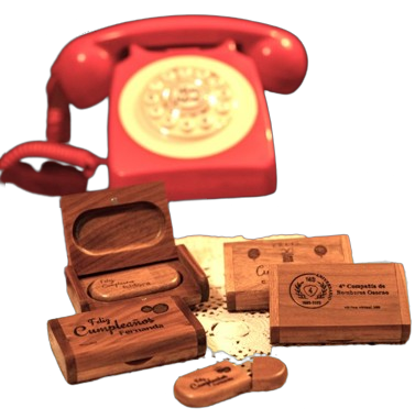 TELEFONO DE MENSAJES: Los audios son entregados posteriormente editados, con música de fondo y efectos de sonido en un pendrive de madera grabado en laser con el nombre de el o los festejados, pendrive que además sirve para guardar fotografías y videos del evento.